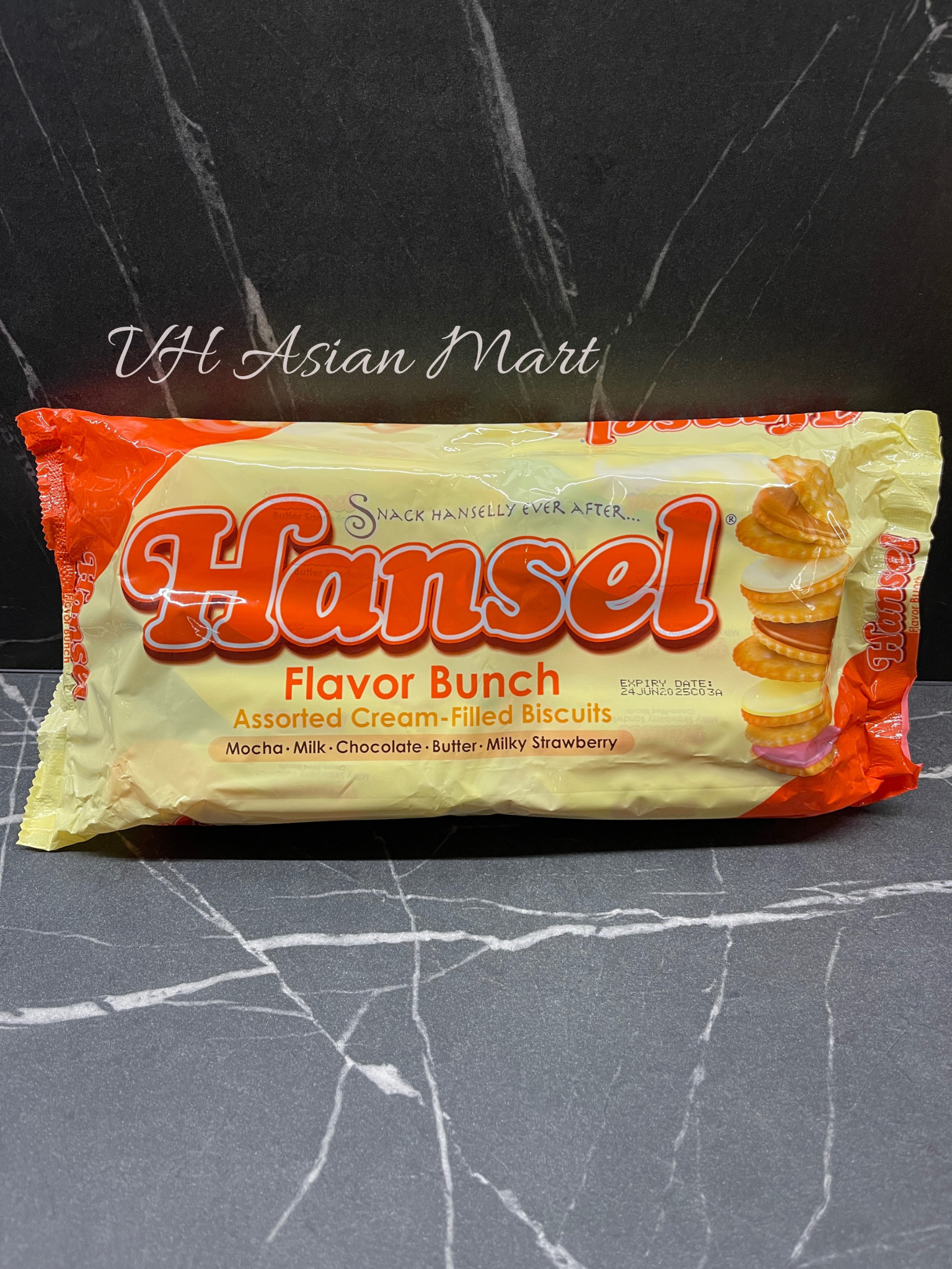 Soft cookie sandwiches with delicious cream filling. A salty-sweet, soft crunch biscuit snack with a distinct aroma that kids love! Contains different flavors of Hansel Sandwich: Mocha, Milk, Chocolate, Butter & Milky Strawberry. Includes 10 pieces per pack so everyone in the family can Snack Hanselly Ever After!